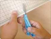 ![]() サクサク切れる通常の片刃仕上げなので、工作用紙も切れます。 |